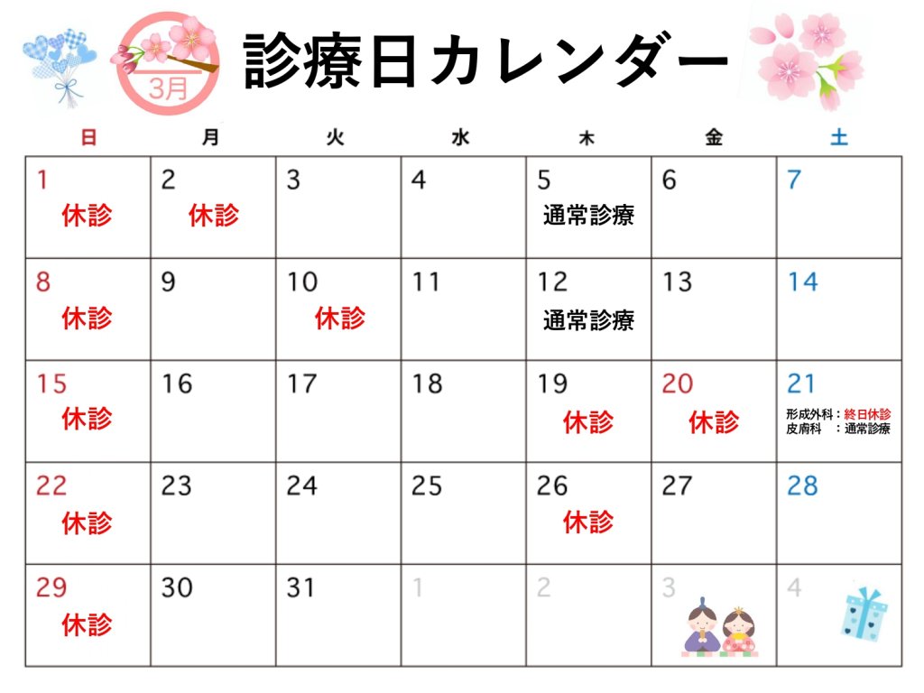 ■ 診療科別 休診日のお知らせ ・3/21(土):形成外科 休診